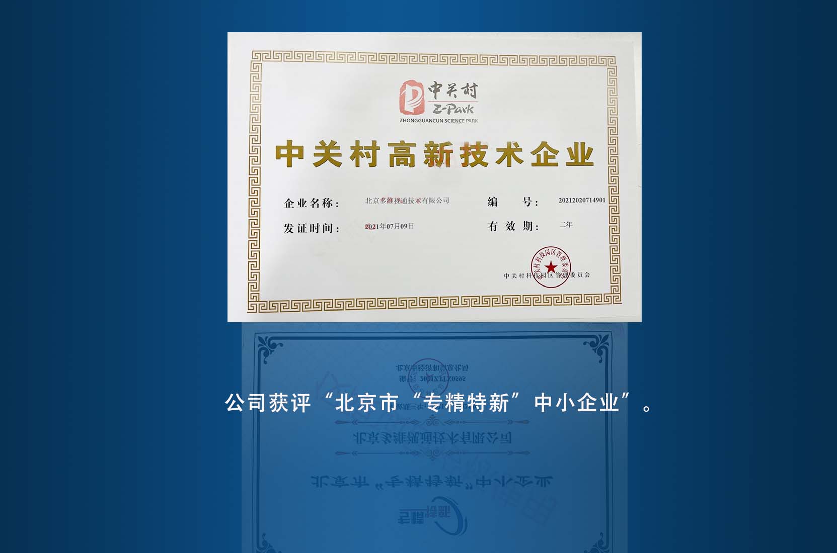 2、公司獲評“北(běi)京市(shì)“專精特新”中小(xiǎo)企業(y↑>≈è)”。