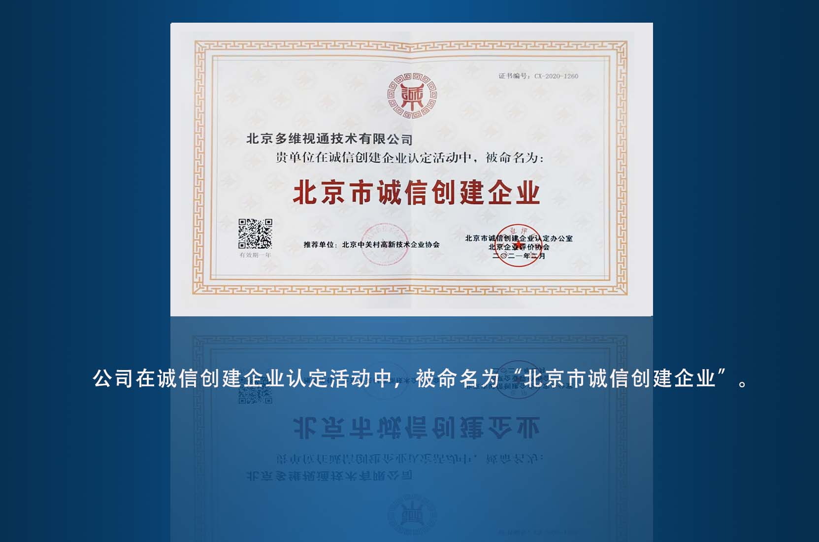 公司在誠信創建企業(yè)認定活動中,被命名為(wèi)“↔π北(běi)京市(shì)誠信創建企業(yè)”。