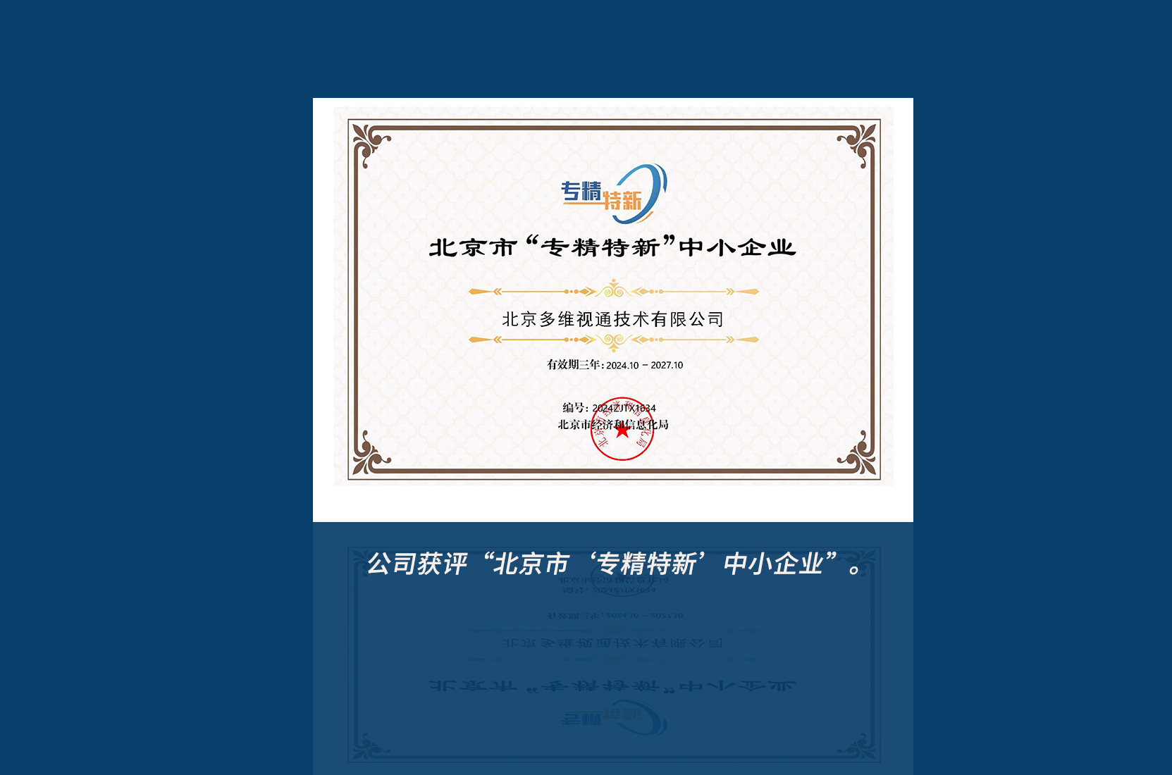 2、公司獲評“北(běi)京市(shì)“專精特新”中小(xiǎo)企業(y↑>≈è)”。